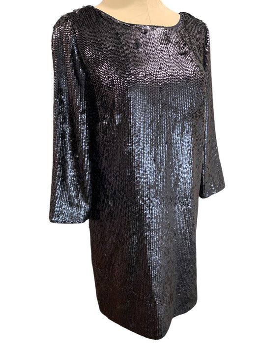 Size 4 J.Crew Navy Blue Sequin Tie Back V Mini Dress H2835