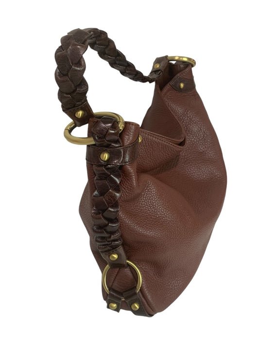 Borsetta Milano Brown Pebbled Leather Braided Strap Handbag