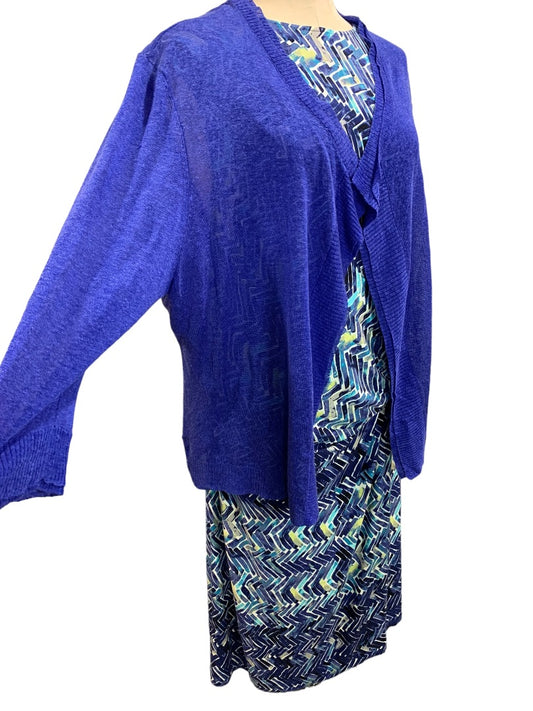 1X Nic + Zoe Print Dress and Cardigan Set Jersey Knit Stretch Knit Sweater