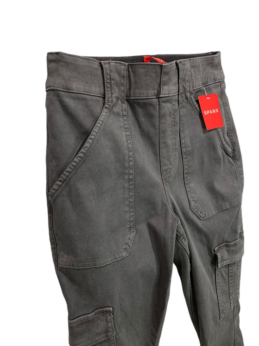 Small Spanx Womens New Stretch Twill Cargo Ankle Pant Washed Black