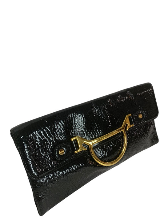 Borbonese Black Crinkle Patent Leather Envelope Clutch Bag 1990s