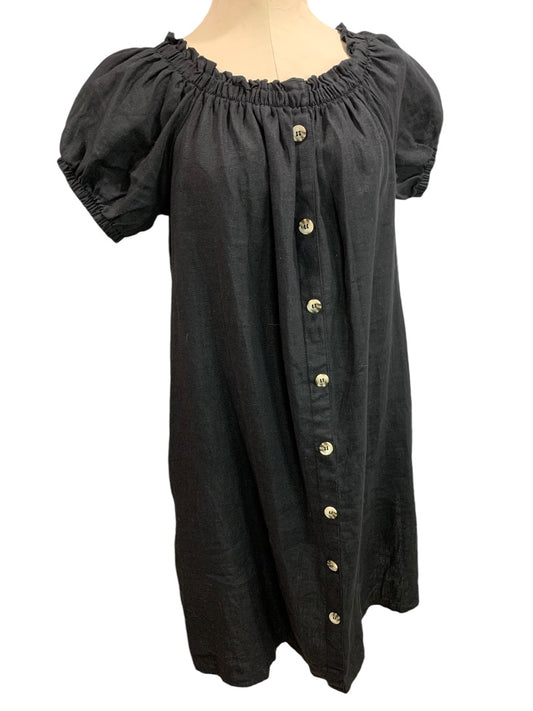 XL Saks 5th Avenue New Black Linen Off Shoulder Button Up Dress