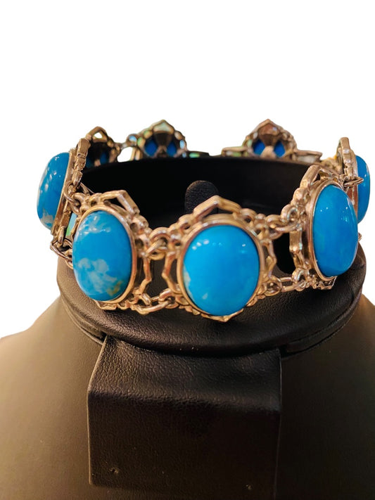 JBK Signed Faux Turquoise Link Bracelet Jacqueline Kennedy 1980s 7-8.2" Adjustable