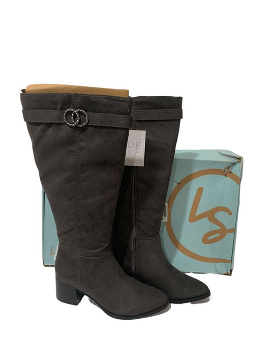 7M Wide Calf LifeStride Soft System New Womens Gray Faux Suede Boots Daring Knee High