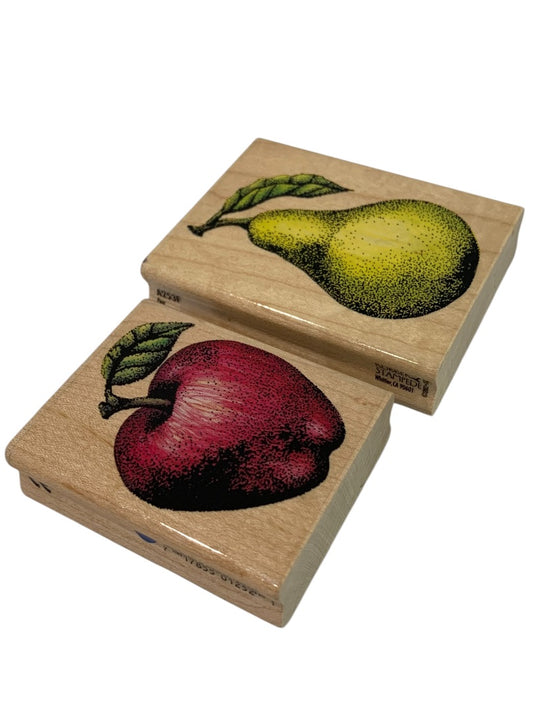 Rubber Stamped Set of 2 Apple A252E and Pear A253F
