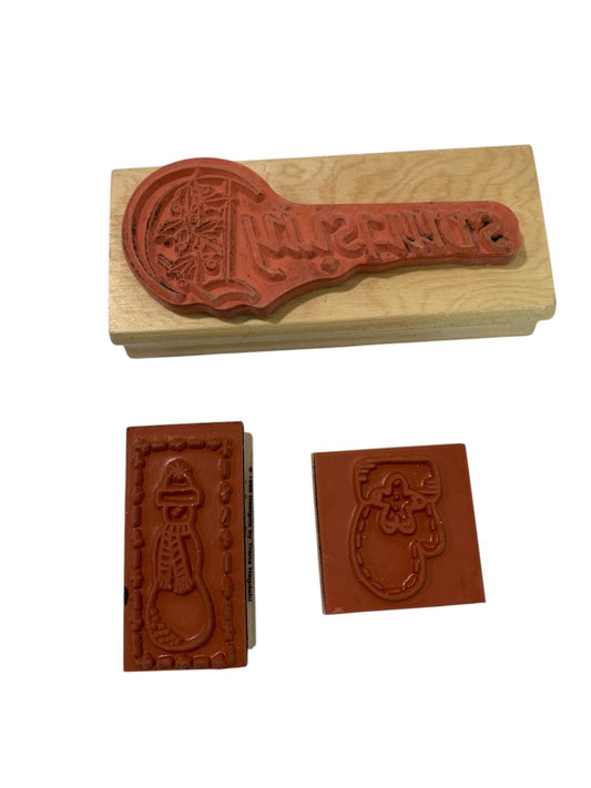 Lot of 3 Rubber Stamps Holiday Winter Christmas Mitten Snowman