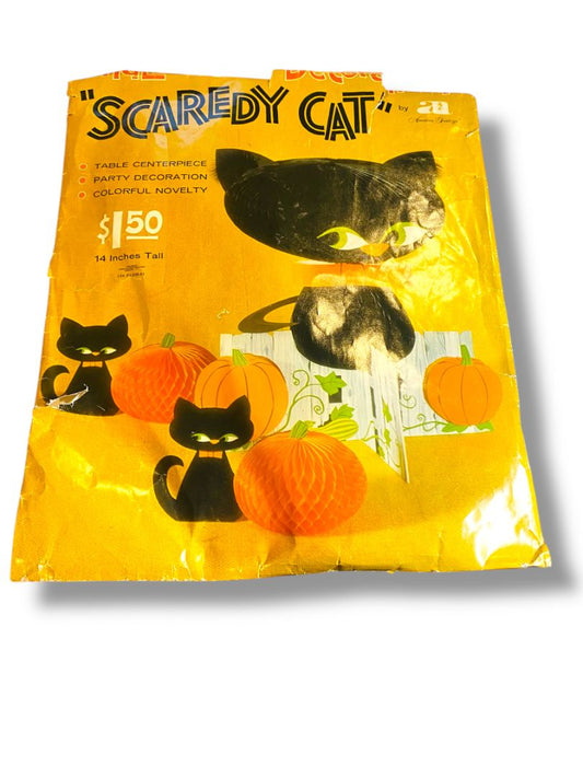 Vintage American Greetings Scaredy Cat Centerpiece Party Decor 14" Honeycomb