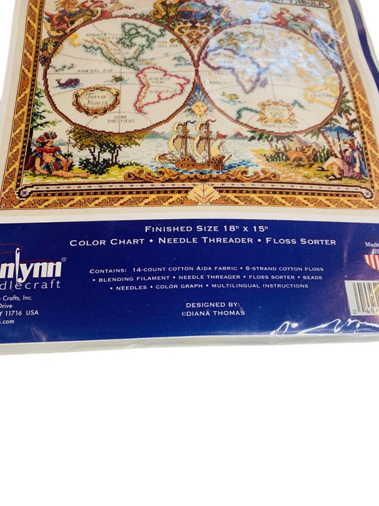 Janlynn Platinum Collection Olde World Map Counted Cross Stitch Kit 18 x 15 New Sealed