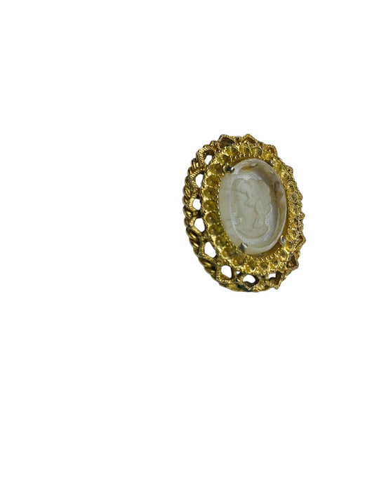 Salvage Clear Acrylic Cameo Goldtone Jewelry Piece Crafting