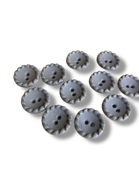 Set of 11 Midcentury Gray Plastic Buttons Twist Border Craft Sew .8" Diameter