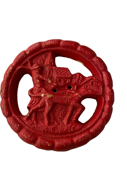 Large Vintage Picture Button Pierced Design Painted Wood 1930s Woman Walking Dog 2.9" Diameter