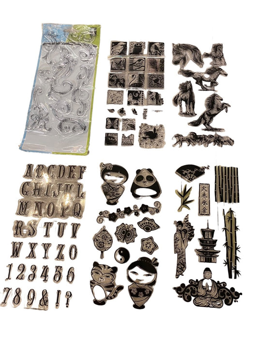 Lot of 6 Sheets Assorted Craft Stamps Clear Flourishes Japan Anime Horses
