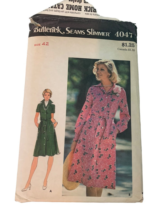 Size 42 Butterick Seams Slimmer 4047 Uncut Pattern Vintage 1970s A-Line Dress