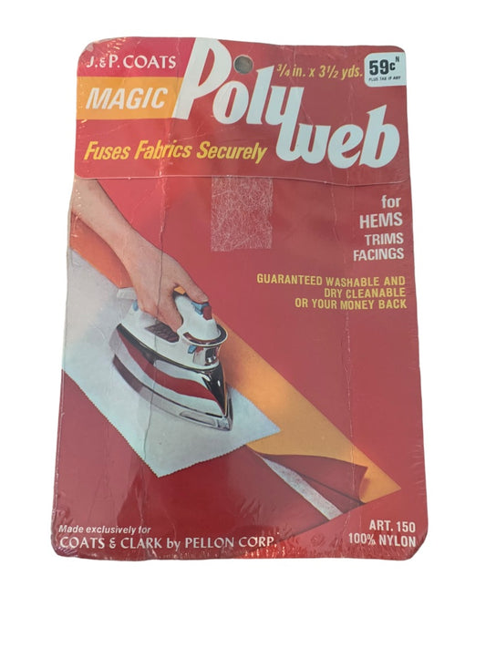 J & P Coats Magic Poly Web Fuses Fabrics for Hems Trims Facings New Old Stock Nylon Art 150