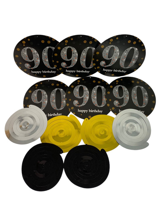 Pack of 6 Haning Paper Metallic 90th Birthday Decorations Black Gold New