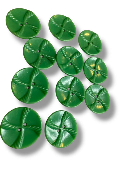 Lot of 11 Green Midcentury Buttons Acrylic Rope Design 1" (27mm)