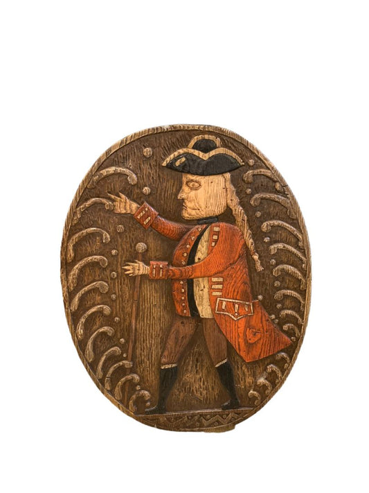 Finesse Originals Vintage Fiberglass Carved Look Wall Scultpture Man Red Coat 30" x 22"
