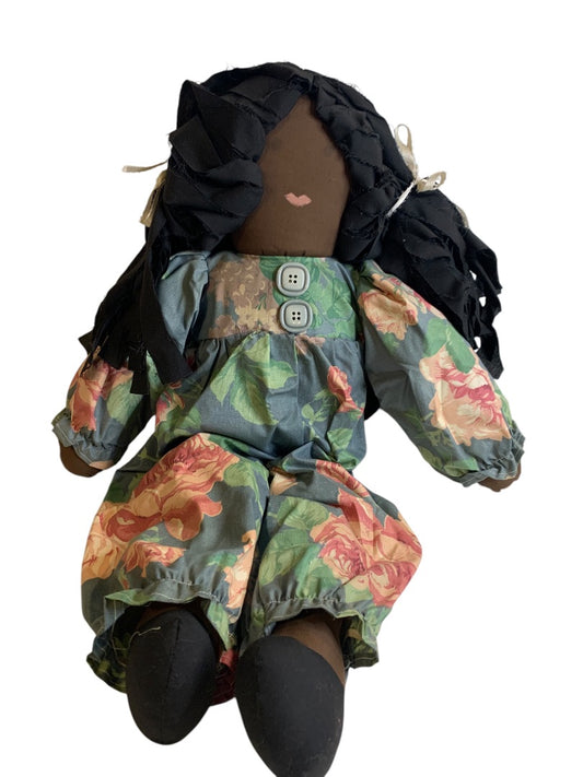 Cloth Doll 22 Inch Girl in Floral Romper Pigtails