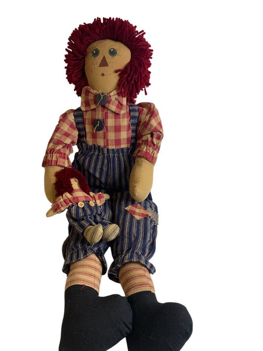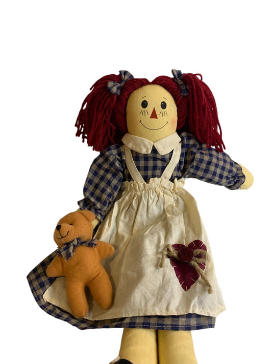 Country Style Raggedy Ann Fabric Doll 17 Inch Weighted