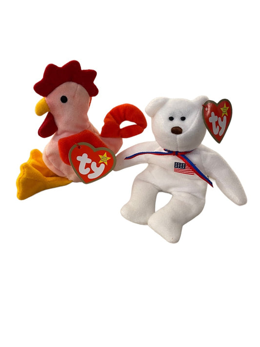 Ty Teenie Beanie Babies Strut the Rooster and Libearty the Bear 5" Plush Tgs