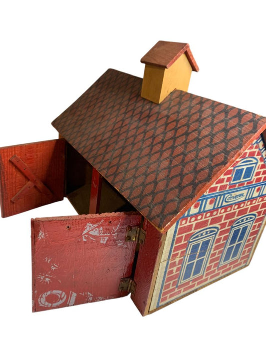 Antique Converse Red Robin Toy Barn Wooden Stable Stamped Wood