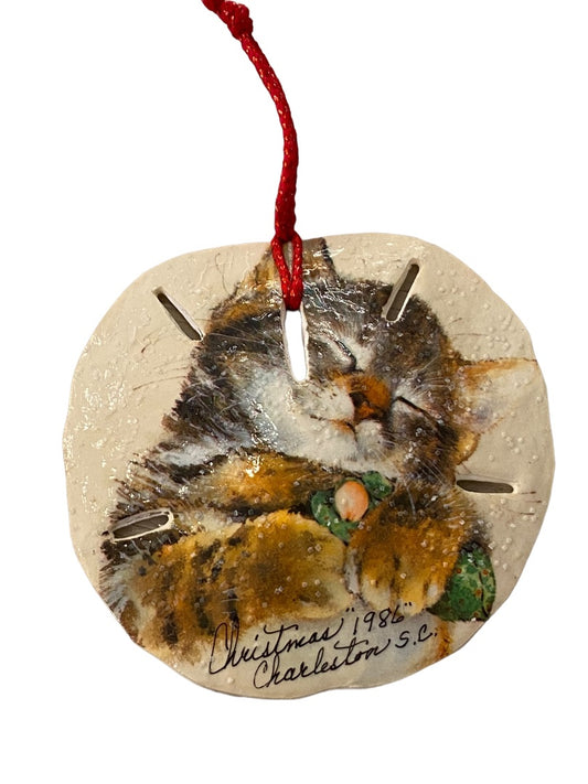 Christmas 1986 Charleston SC Sand Dollar Kitten Ornament Holiday