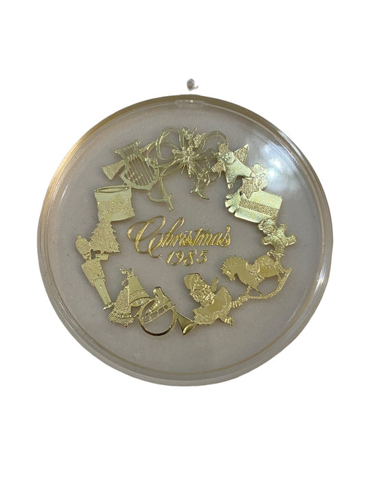 Clear Acrylic Christmas 1985 Ornament Goldtone Insets Nutcracker Theme