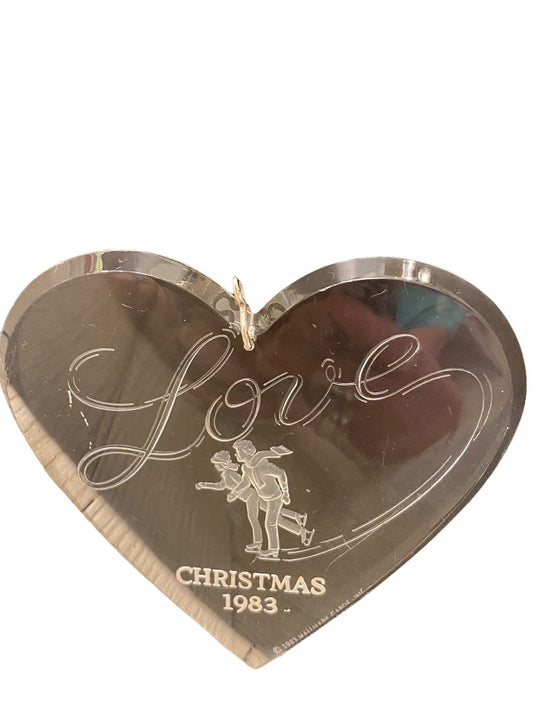 Clear Acrylic Christmas 1983 Ornament Love Ice Skaters Heart Shape 3 3/4"