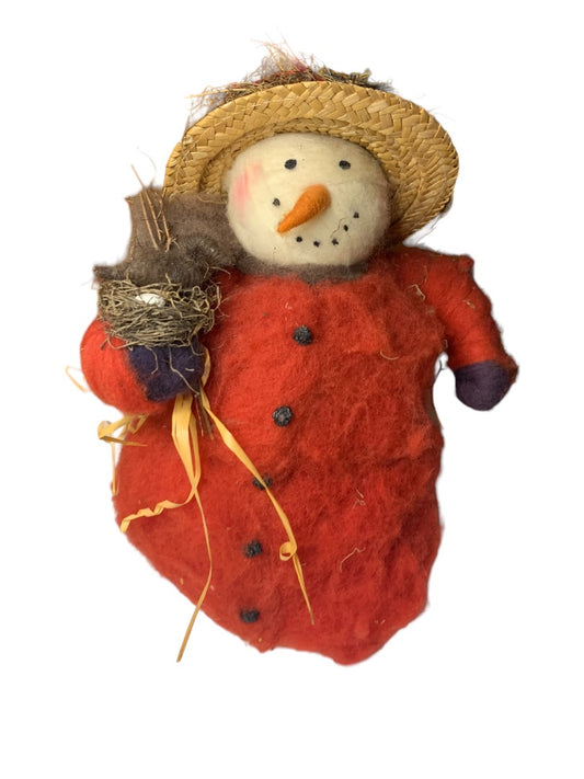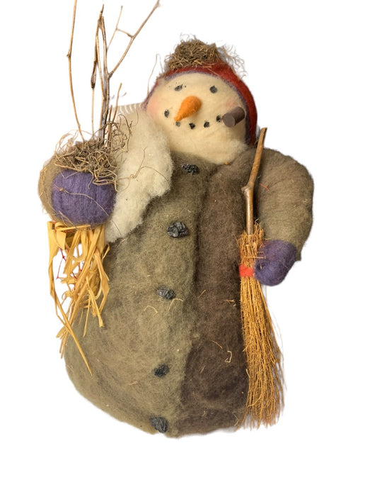Snowman Decoration Felted over Styrofoam Country Nature Theme 12"