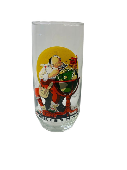 Coca Cola Christmas Tumbler Glass Reproduction of Norman Rockwell Curtis Pub Vintage