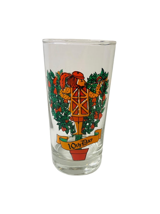 Vintage Tumbler Glass Taylor Smith & T 10th Day of Christmas Orange 10 oz Drinking