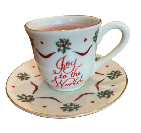 Dicksons Joy to the World Holly Ribbon Christmas Cup & Saucer Candle