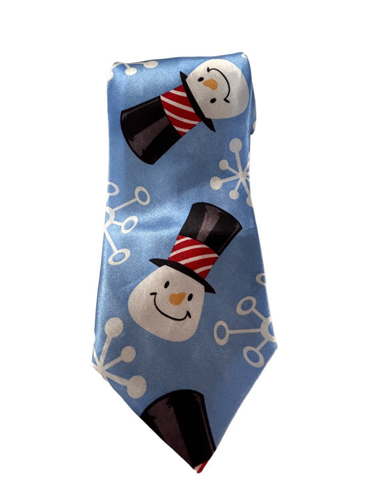 Four Star Men's Necktie Tie Powder Blue Snowman 52 Inch Length Polyester Novelty