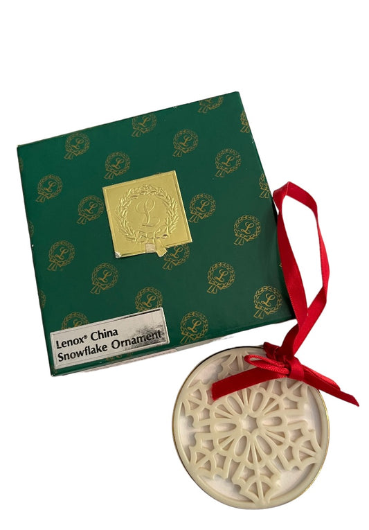 Lenox China Snowflake Ornament in Box Vintage 2.25" Diameter Red Ribbon