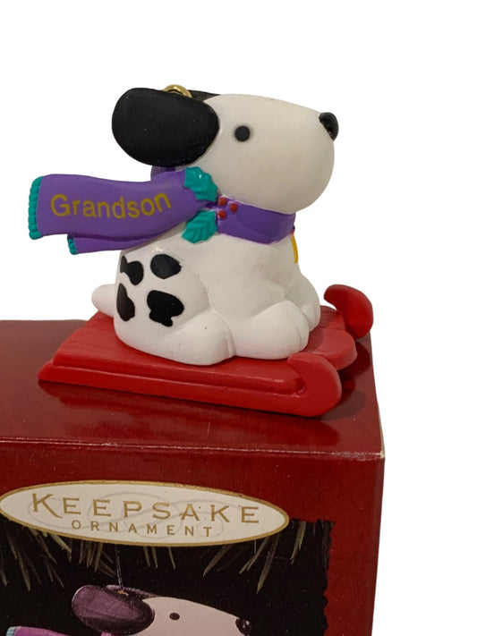 Hallmark Keepsake "Grandson" 1996 Ornament Dog on Sled