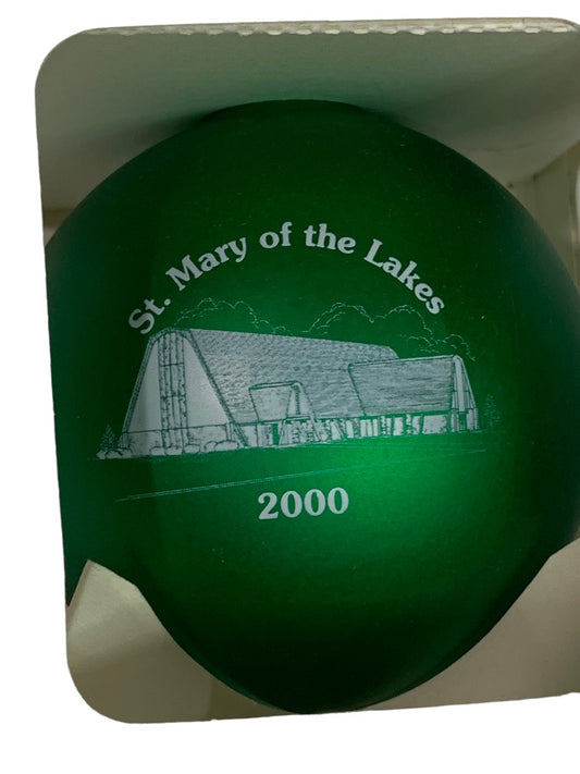 St. Mary of the Lakes 2000 Holiday Ornament Green Glass Ball