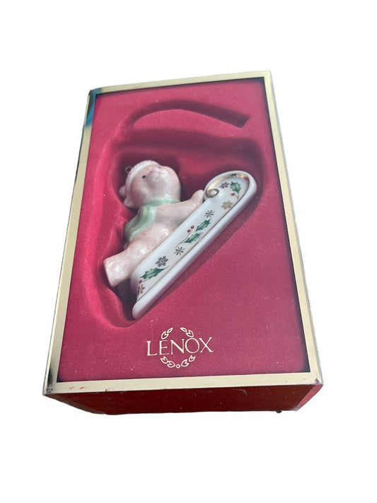 Lenox Sleightime Teddy Bear Sled Ride Holly Ornament Boxed Porcelain