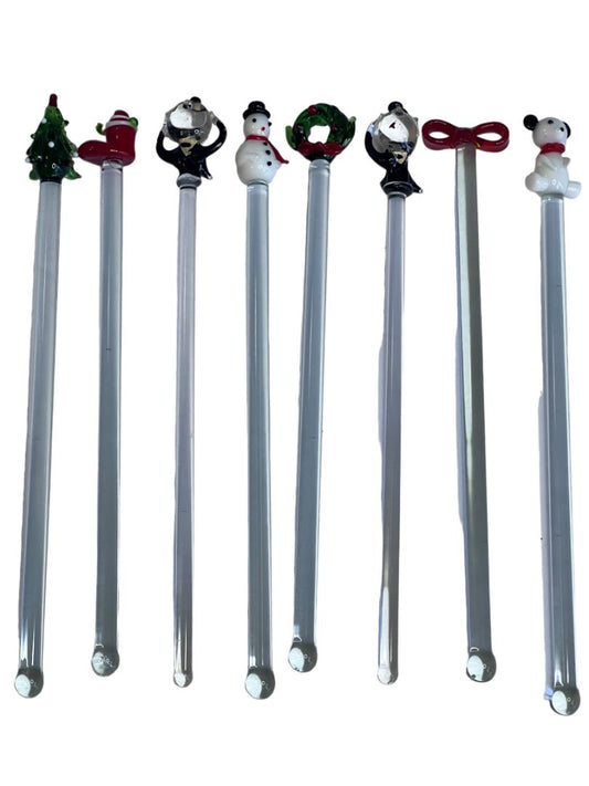 Vintage Blown Glass Christmas Drink Stirrers Swizzle Sticks
