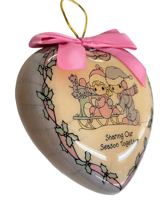 Vintage 1995 Precious Moments Heart Ornament "Sharing Our Season Together" 3.5"