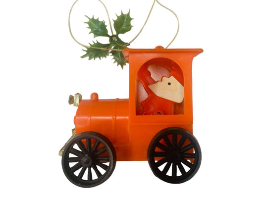 Vintage Doubl Glo Plastic Santa Train Ornament Hong Kong 3 7/8"L x 2 1/2"h