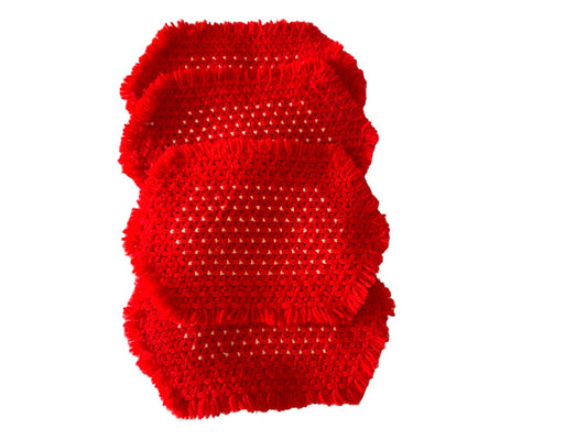 Set of 4 Kitsch Vintage Red White Crochet Placemats Handmade 18" x 12"