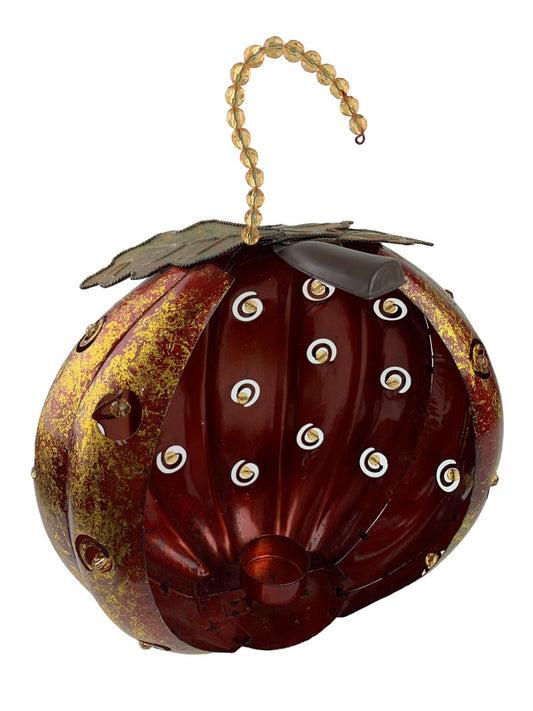Metal Pumpkin Tabletop Gold Paint Beaded Candle Holder Fall Accent Votive