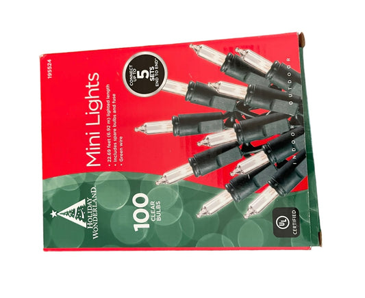 Holiday Wonderland Mini Lights 100 Clear Bulbs Green Wire Indoor Outdoor