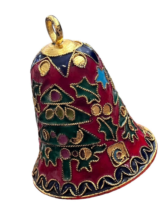 Cloisonne Christmas Tree Bell Small Gold Tone Metal Vintage