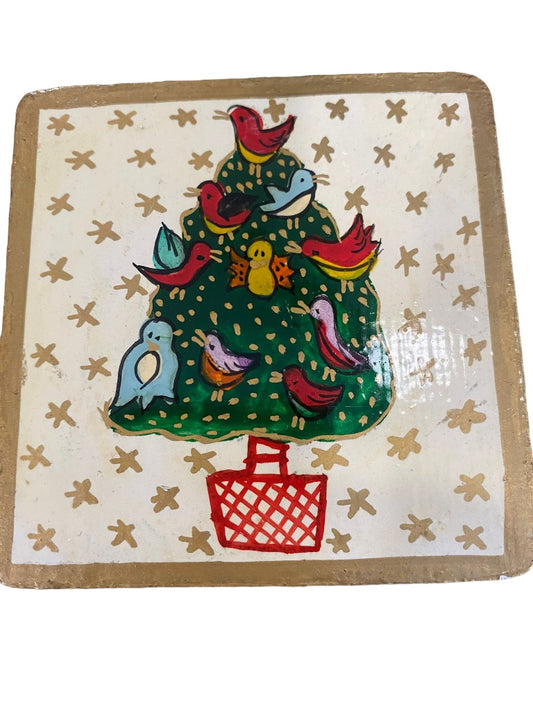 Foreside Painted Christmas Coasters Wooden Glossy Glaze With Box