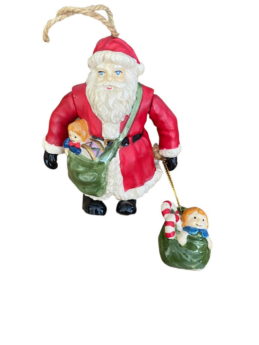 Hanging Santa Claus Ceramic Painted Ornament Toy Bag