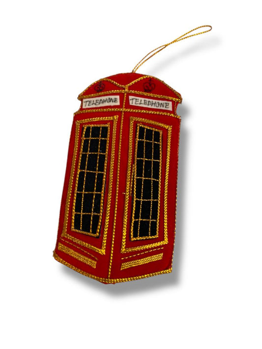 Vintage Handmade Red Telephone Booth Fabric Ornament Christmas 4.25"