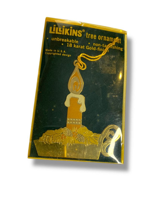 Vintage Lillikins Tree Ornament Candle 18K Gold Finish New 4"