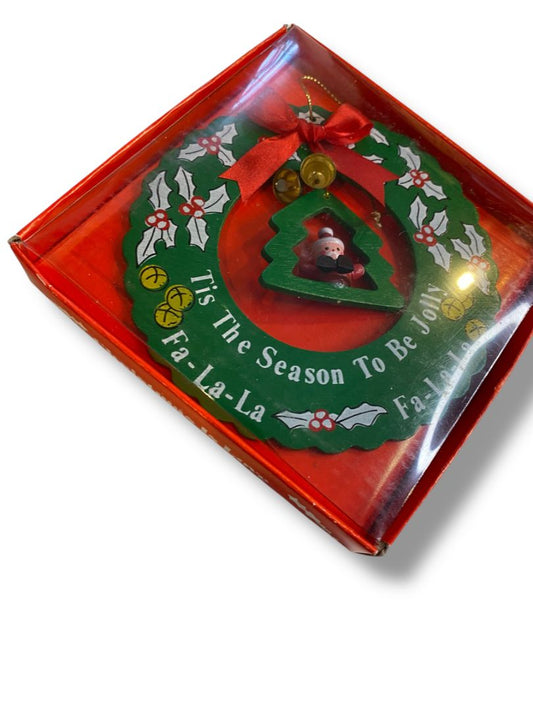 1986 Giftco Christmas is Love Wood Wreath Santa Hanging Ornament 5”