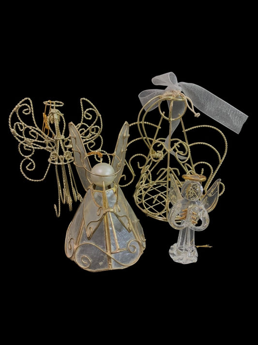 Goldtone Angel Ornaments Acrylic and Metal Hanging Christmas